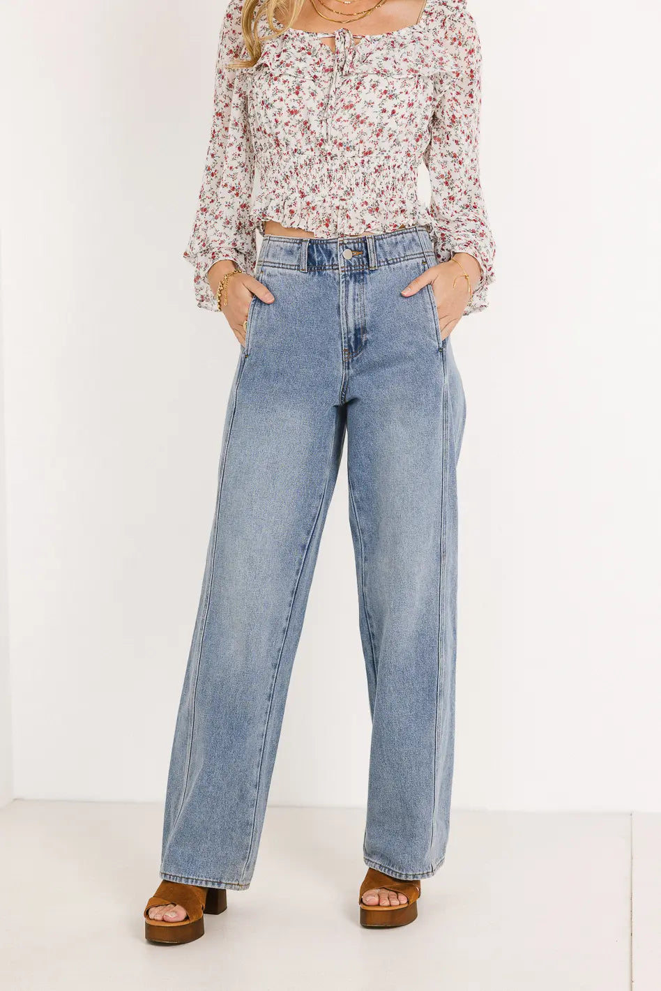 The Acacia Wide Leg Jeans are the next best panel jeans. These pants are stylish and trendy while remaining comfortable. Wear these jeans with a button up and blazer for a solid business casual look.