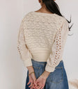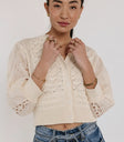 - Eyelet Lace 3/4 Sleeve with Ribbed Cuff