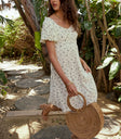 We are in love with the Aliotta Smocked Dress and its ditsy floral pattern. This stretchy dress is the perfect combination of cute and comfortable. We like to style it with a platform sandal and an oversized denim jacket.