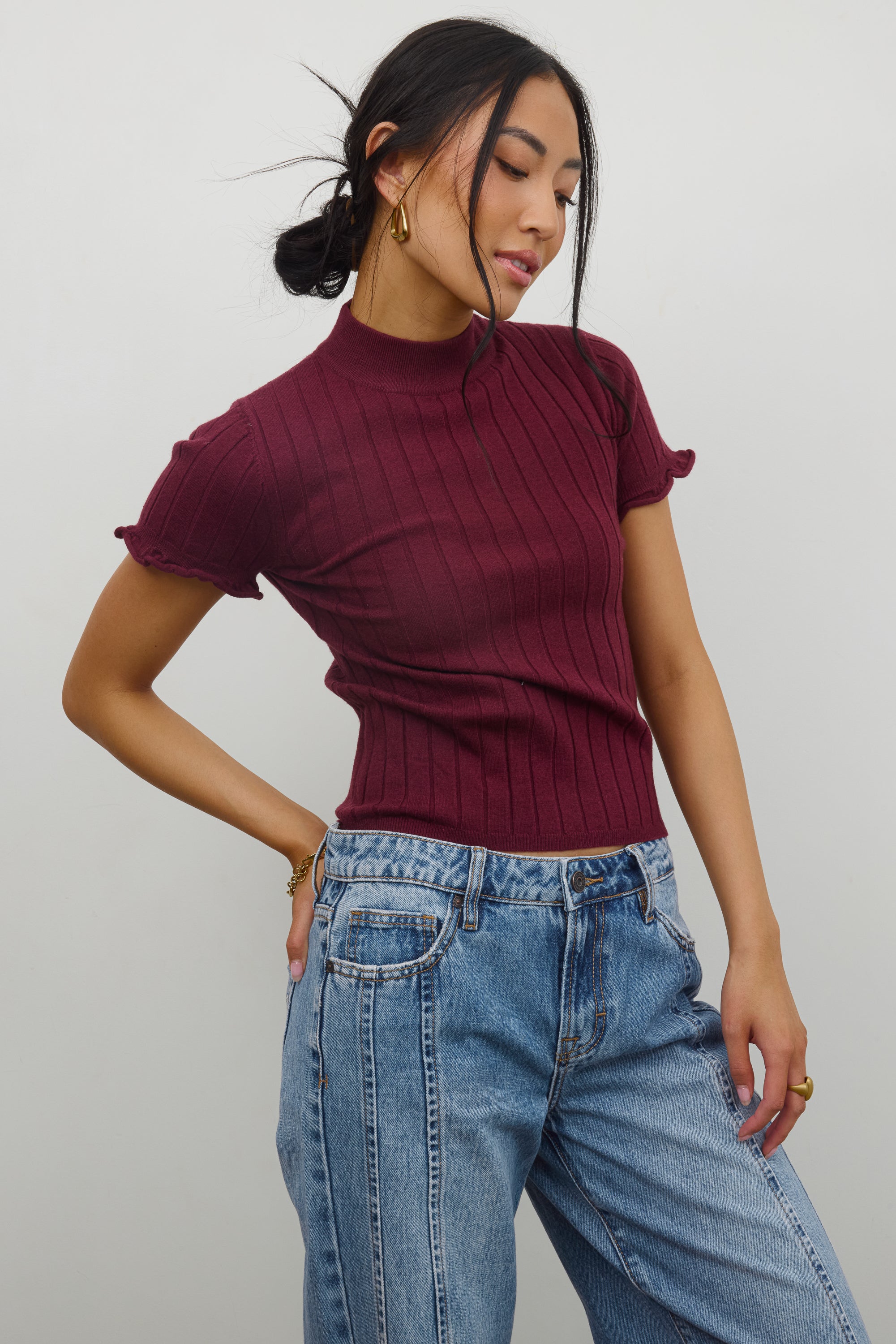 Amara Ribbed Top in Burgundy