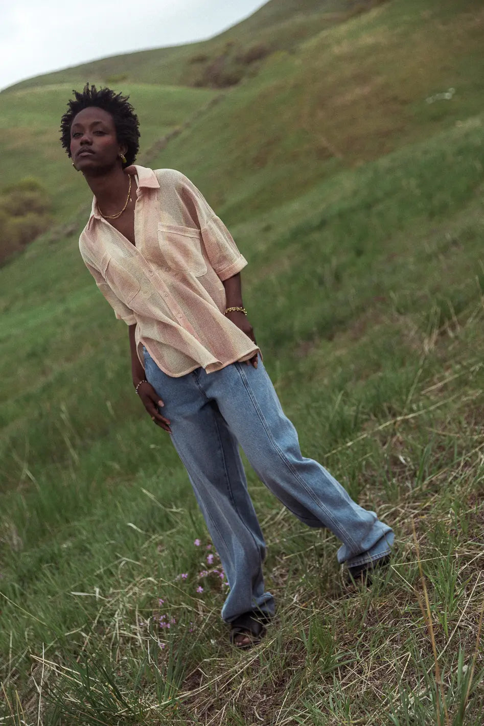 We see right through you-- You're just as obsessed as we are with the Astrid Mesh Button Up. This top is perfect for those hot summer days. Stay cool while rocking some layers with a bandeau top and a pair of denim shorts.