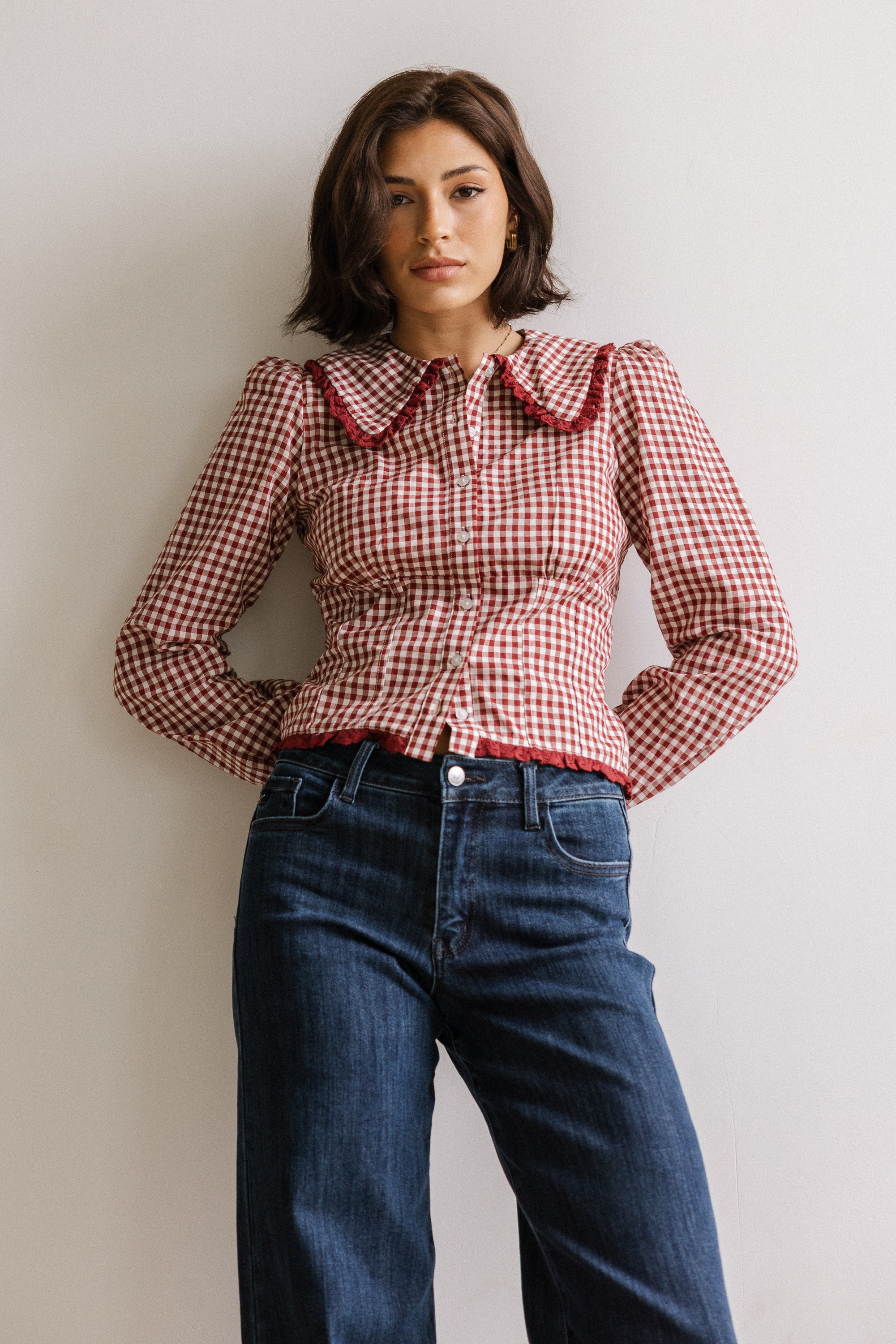 Brenna Gingham Blouse in Burgundy - FINAL SALE