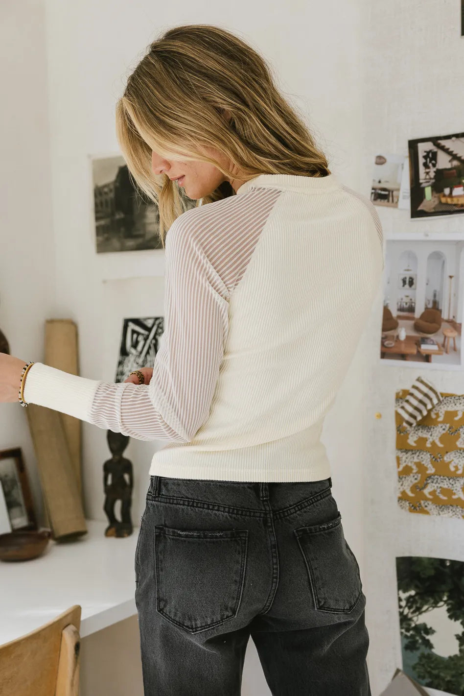 - Long Ribbed Mesh Sleeves