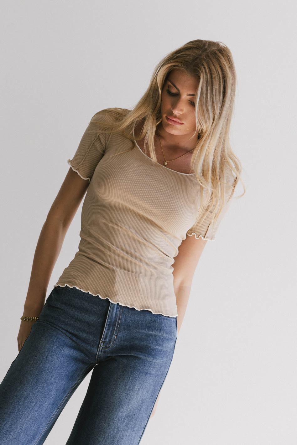 Carly Lettuce Edge Tee in Taupe - FINAL SALE