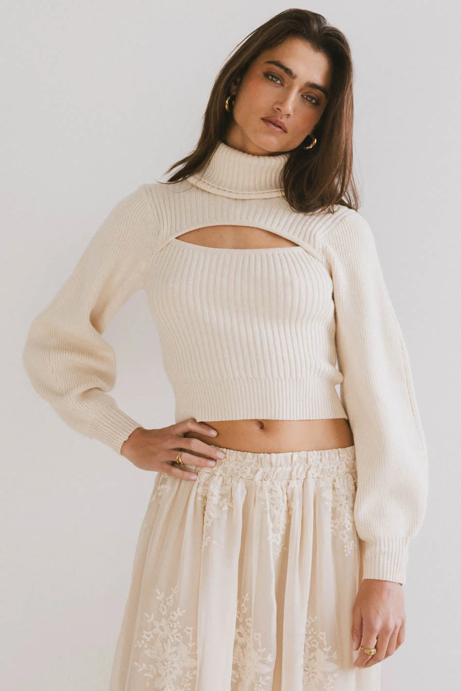 Cut Out Turtleneck Sweater in Cream - FINAL SALE