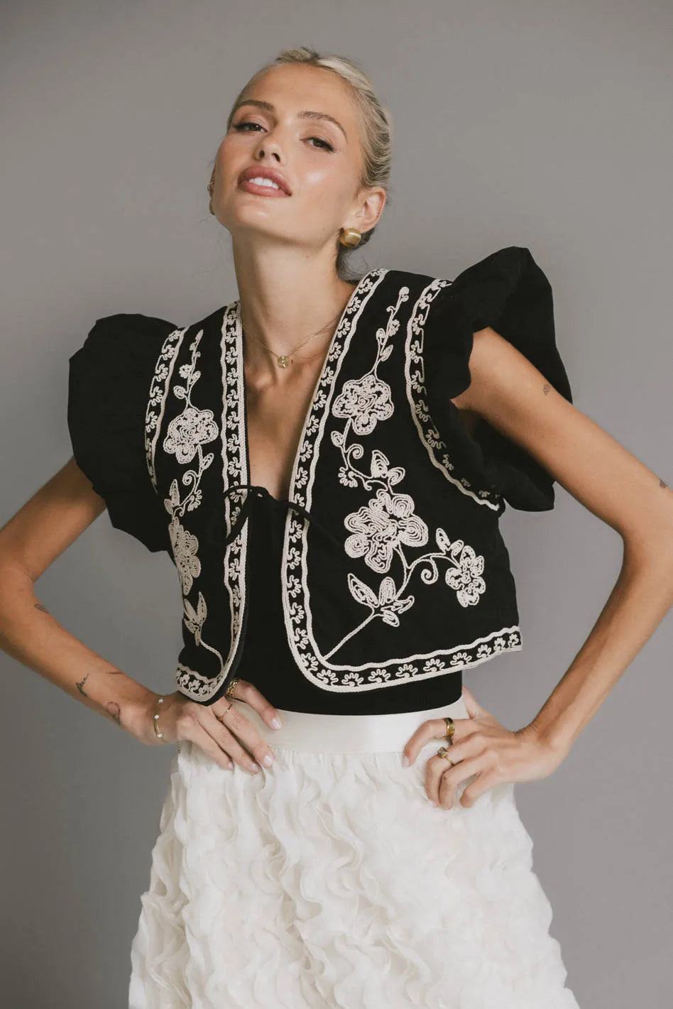 - Embroidered Floral Details