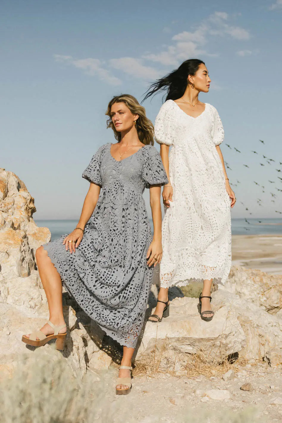 Devon Eyelet Lace Maxi Dress in Blue - FINAL SALE