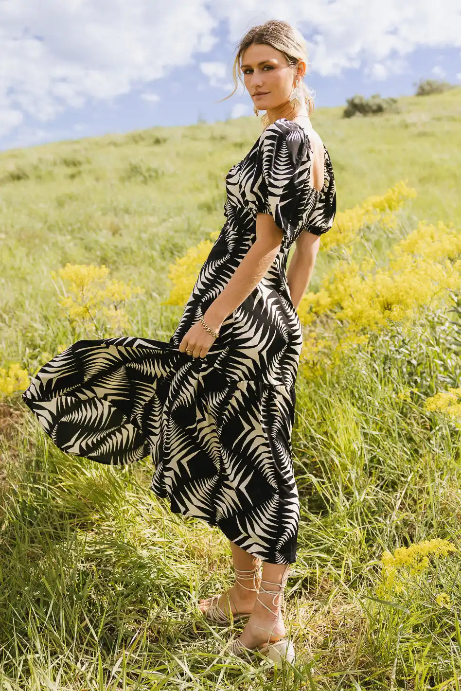 Abstract prints are top of mind this season and the Dinah Abstract Midi Dress has certainly captured our attention. This dress is elegant and performs in any occasion. Pair with a simple heel and a clutch for a formal look.