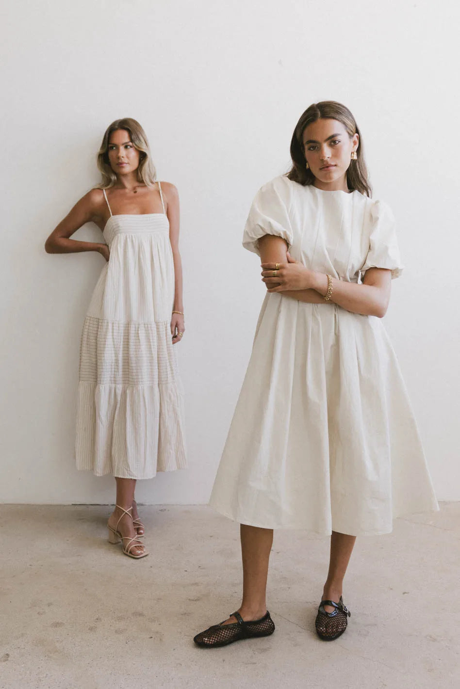 Eliana Pleated Midi Dress in Cream - FINAL SALE