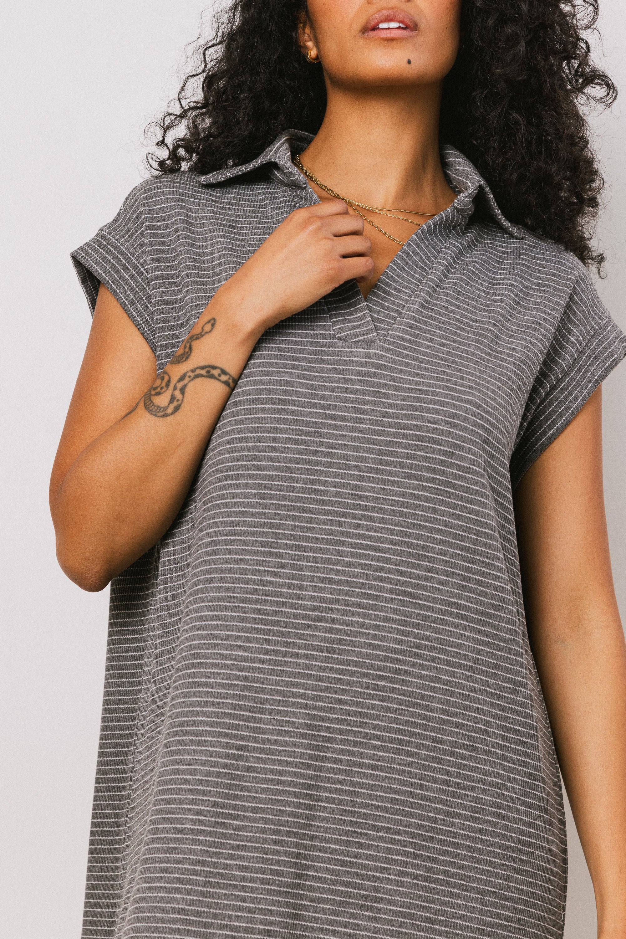 - Collared V-Neckline