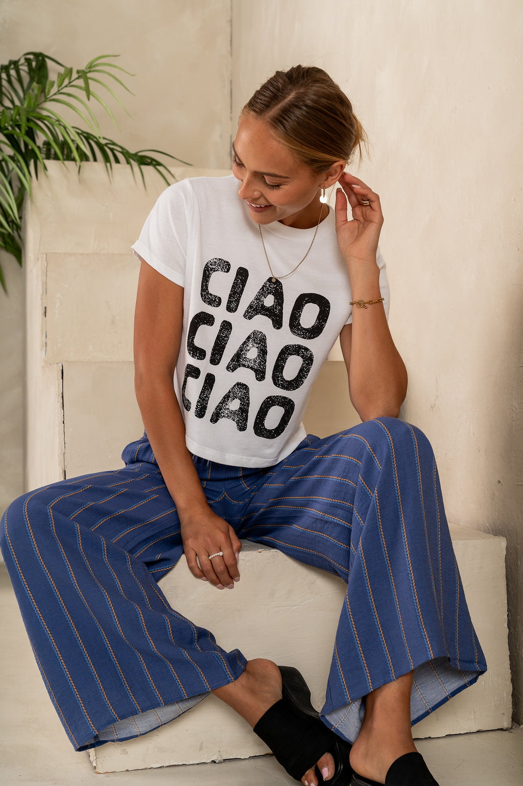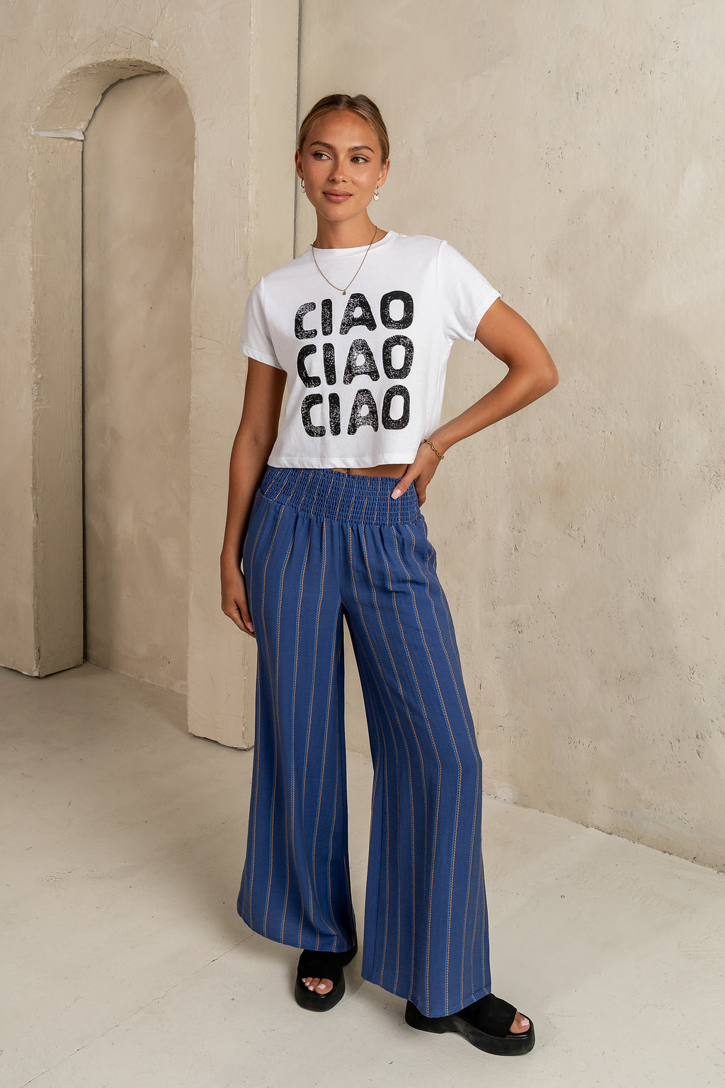Emery Striped Wide-Leg Pants in Indigo - FINAL SALE