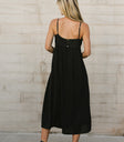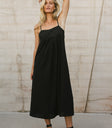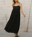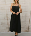 The Genevieve Empire Midi Dress in Black shows us why the world loves empire waists so much. This romantic midi is perfect for wedding season. Pair with a black heel and pair of gold earrings.