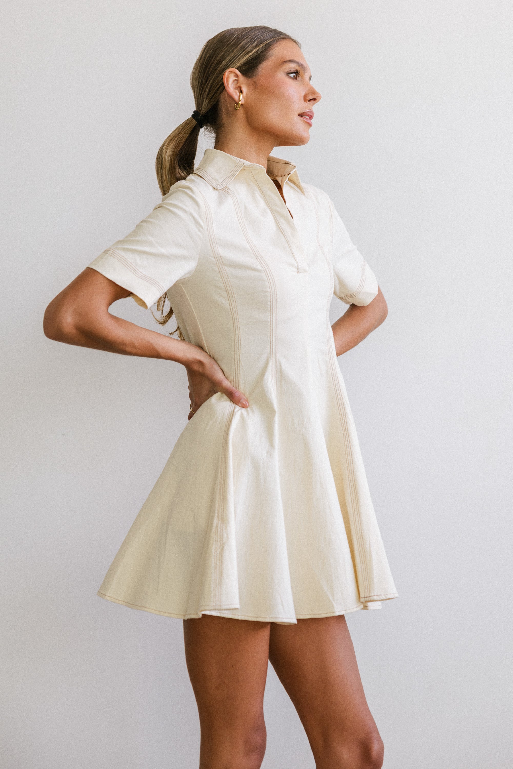 - Collared V-Neckline