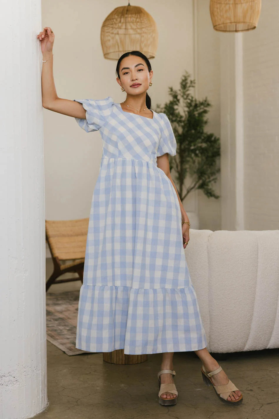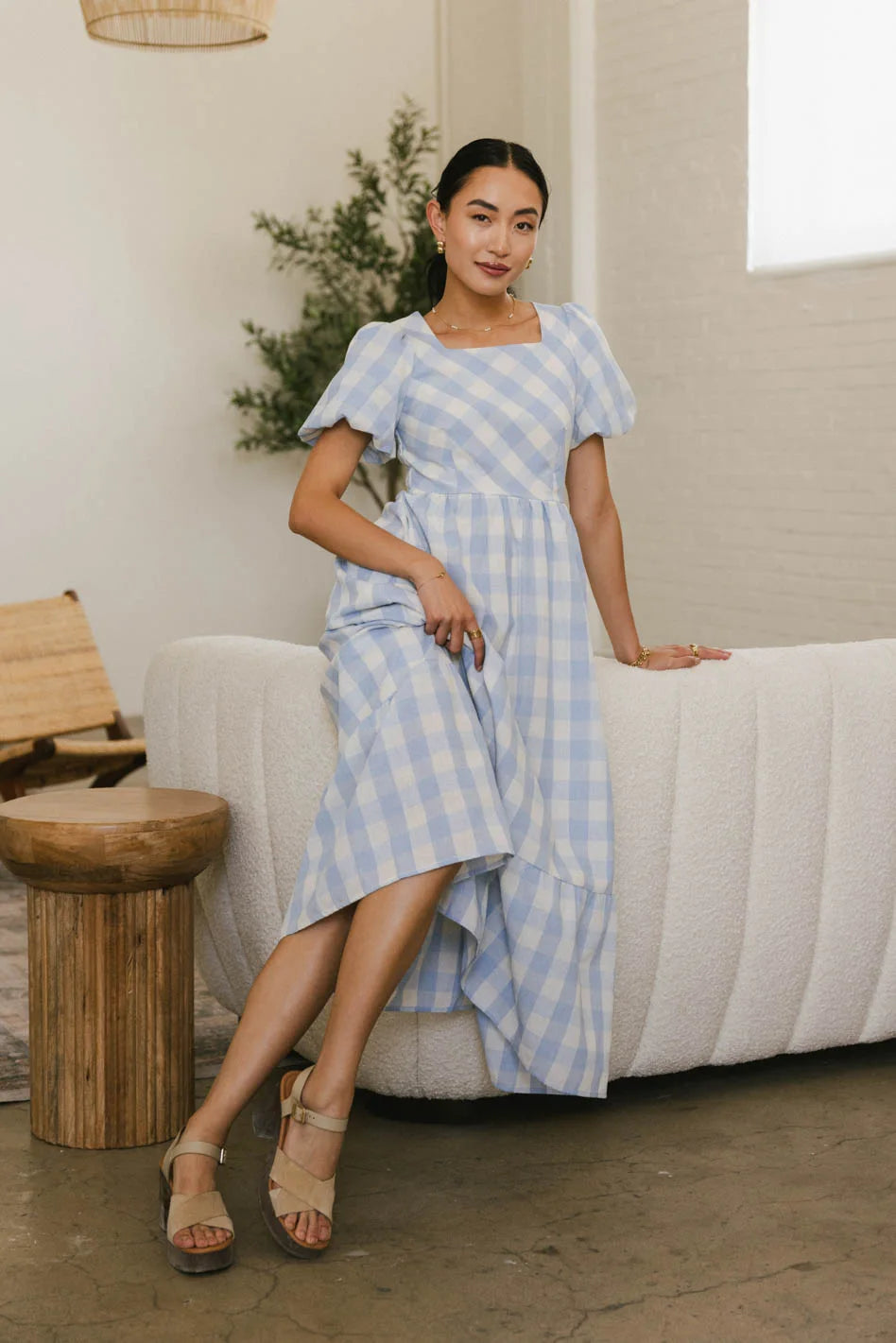 Jenna Gingham Maxi Dress in Blue - FINAL SALE
