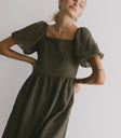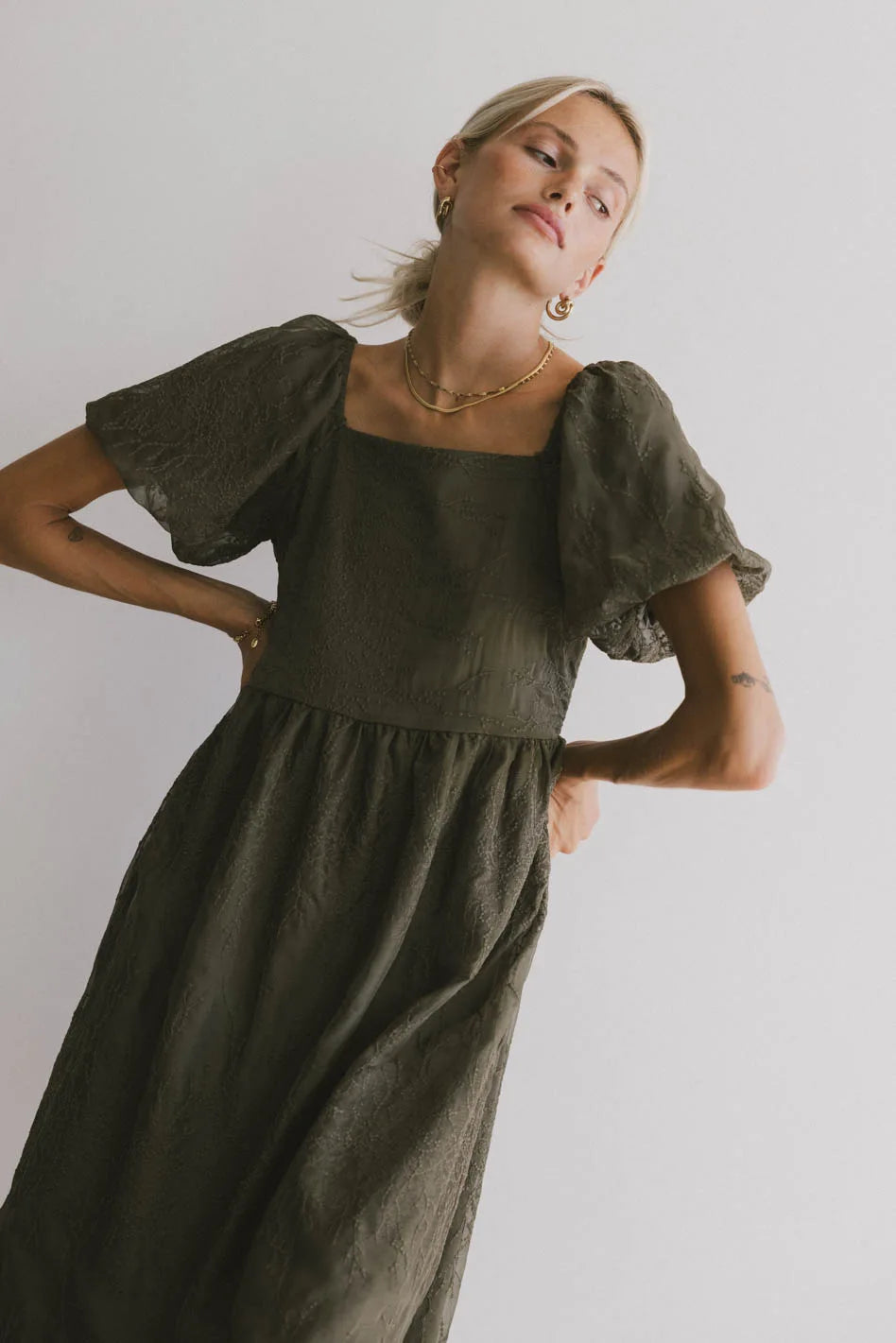 The Karrie Embroidered Midi Dress brings a soft, romantic feel with its delicate embroidery and puff sleeves. It’s perfect for an outdoor brunch, adding charm and elegance to your day. Pair it with sandals for an easy, beautiful look.