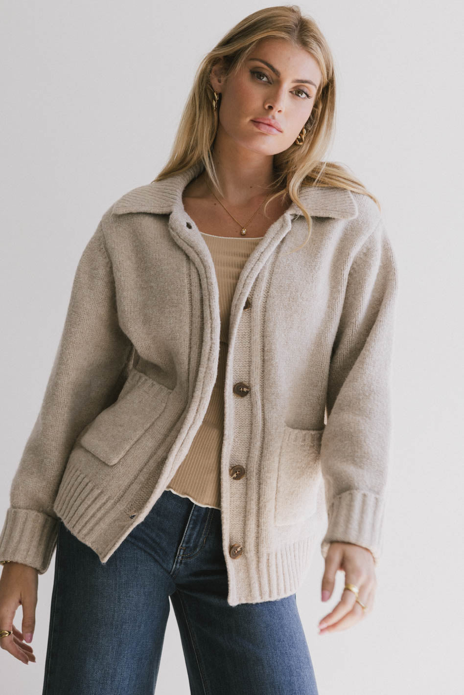 - Ribbed Collared Neckline