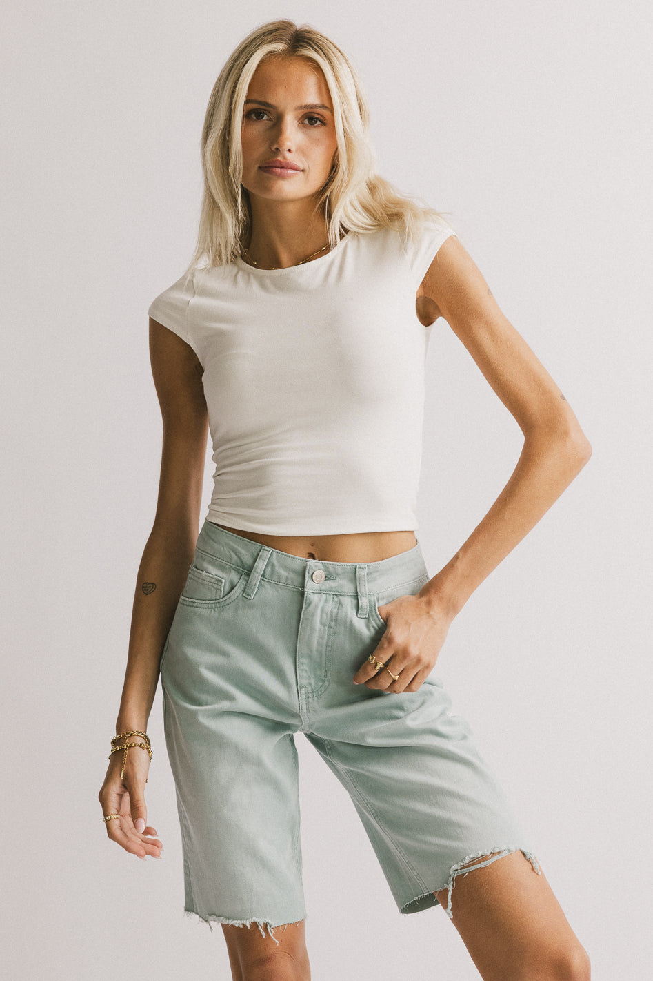 Marlene Denim Shorts in Seafoam - FINAL SALE
