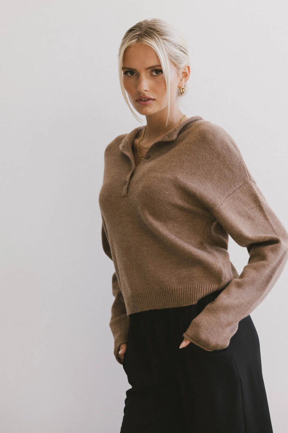 Meli Button Front Knit Sweater in Brown - FINAL SALE