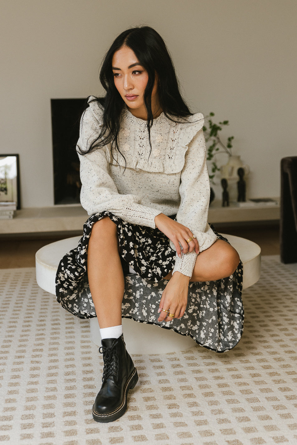 - Open Knit Detailing on Cuffs and Neckline