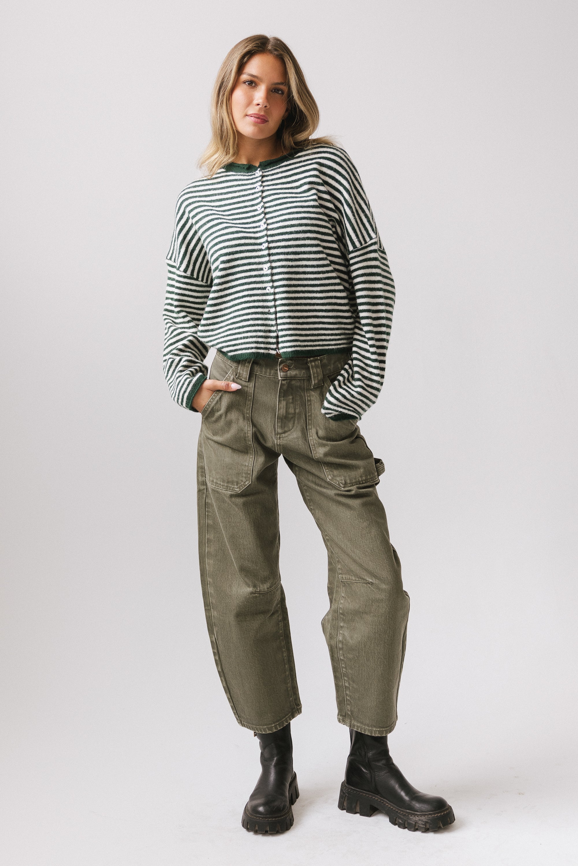 Miriam Striped Cardigan Forest