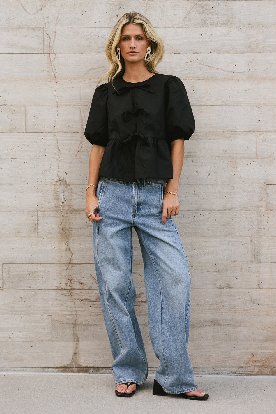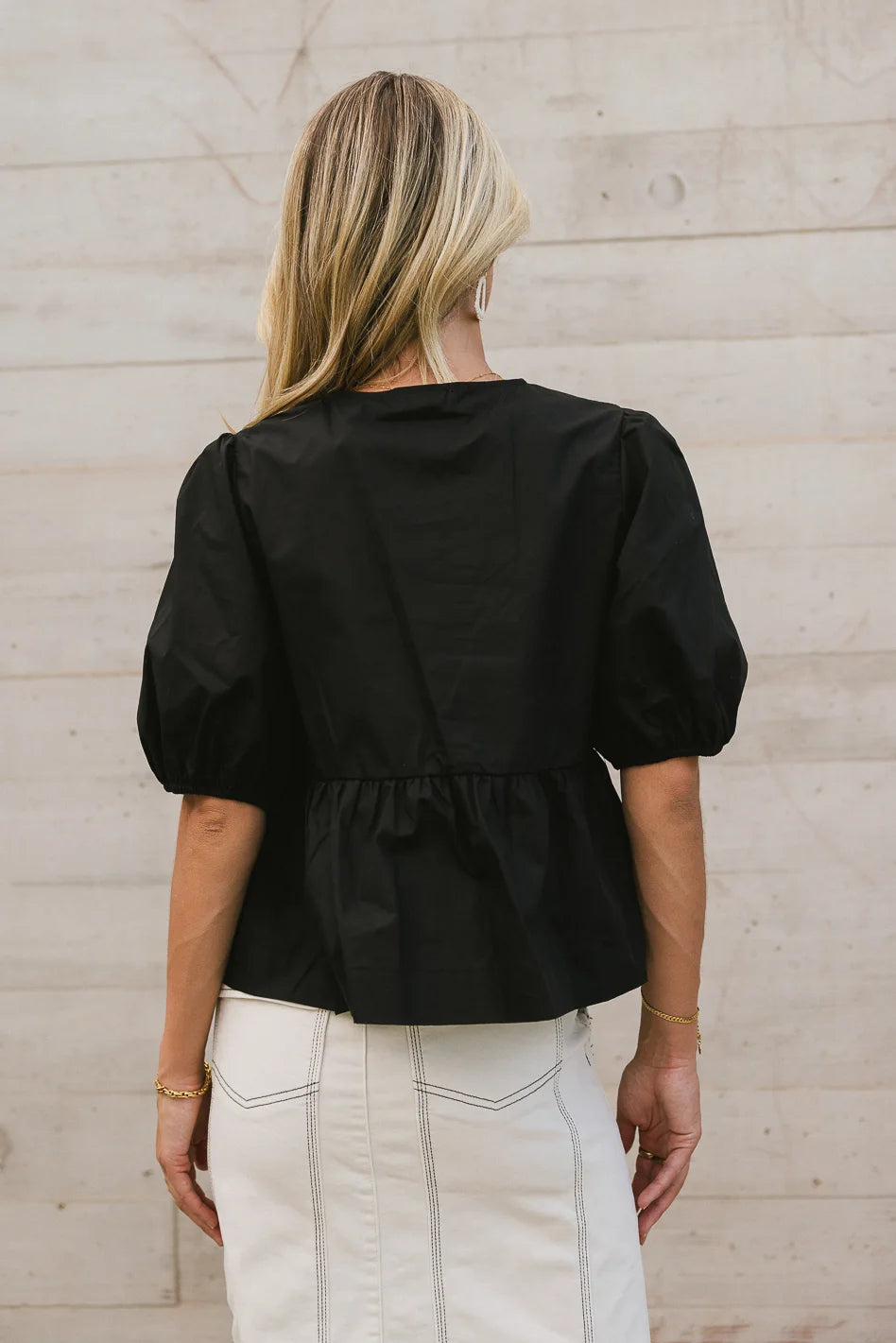 The confidence that the Natalia Peplum Tie Blouse in Black gives is perfect for formal events. From business meetings to drinks, style this top with a pencil skirt and statement jewelry.