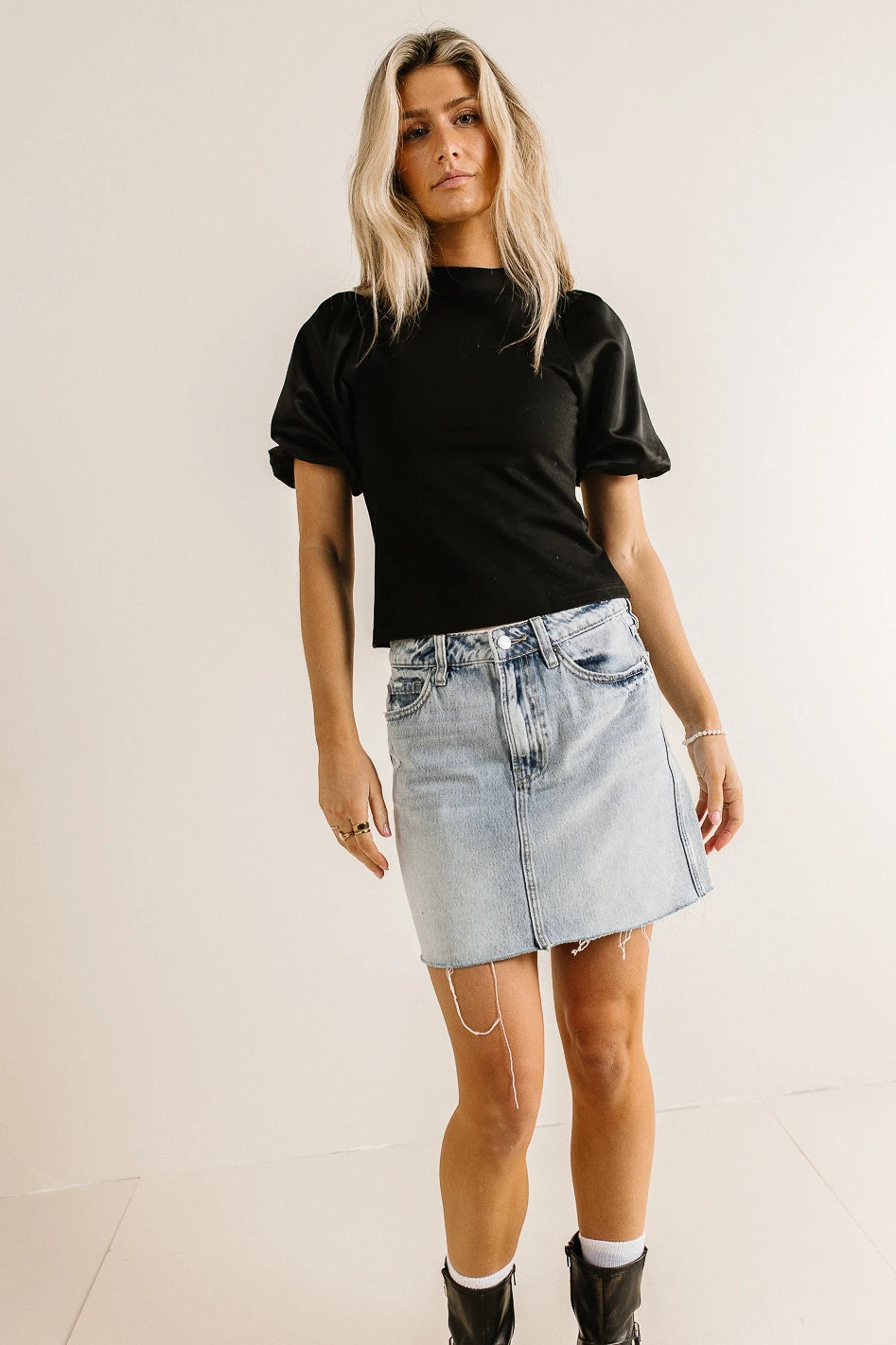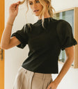 - Satin Feel Short Puffed Sleeves with Elastic Cuffs