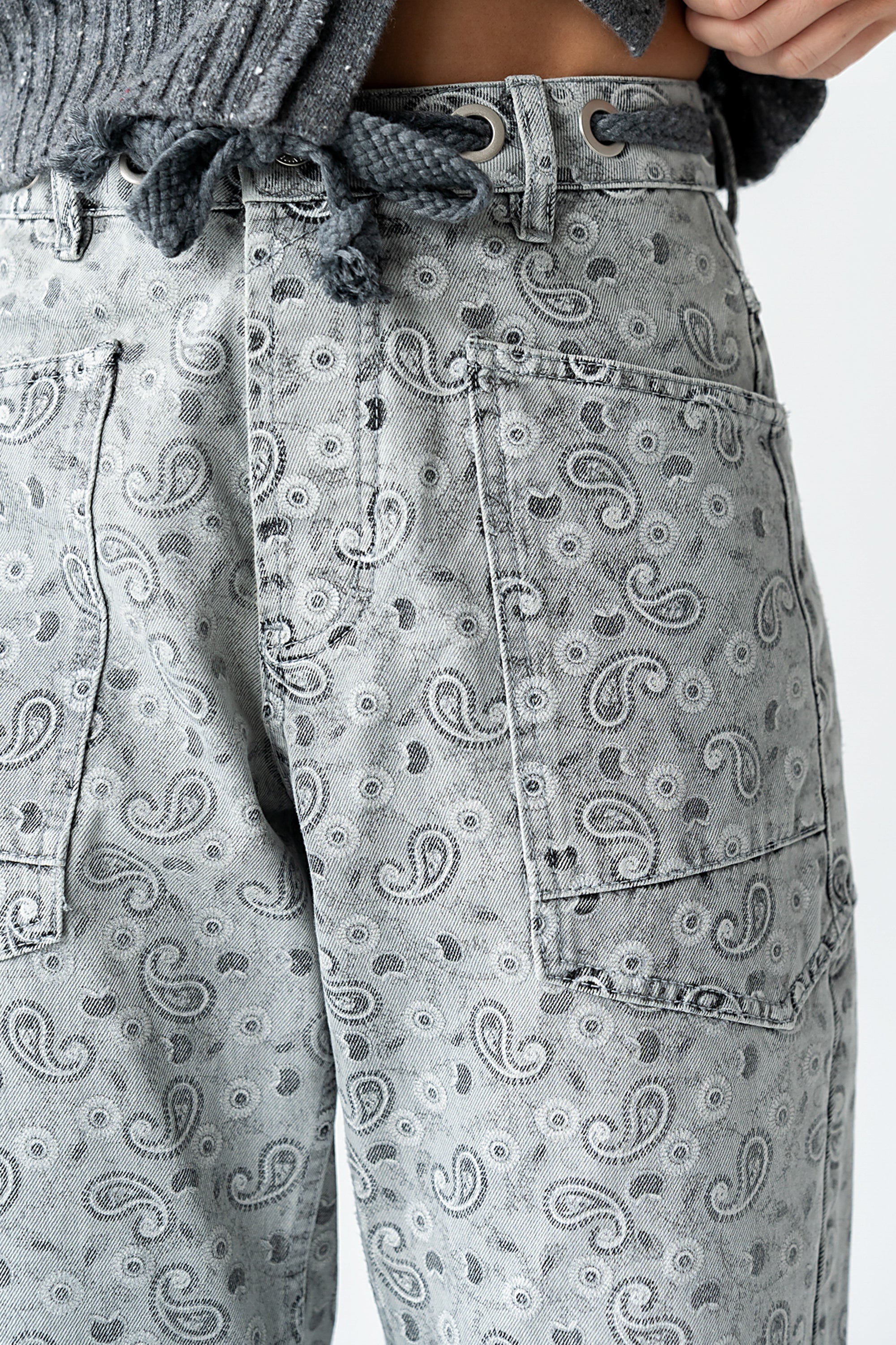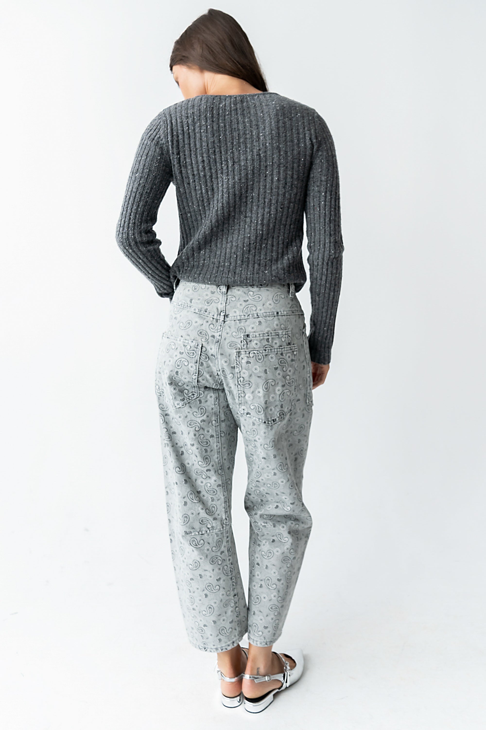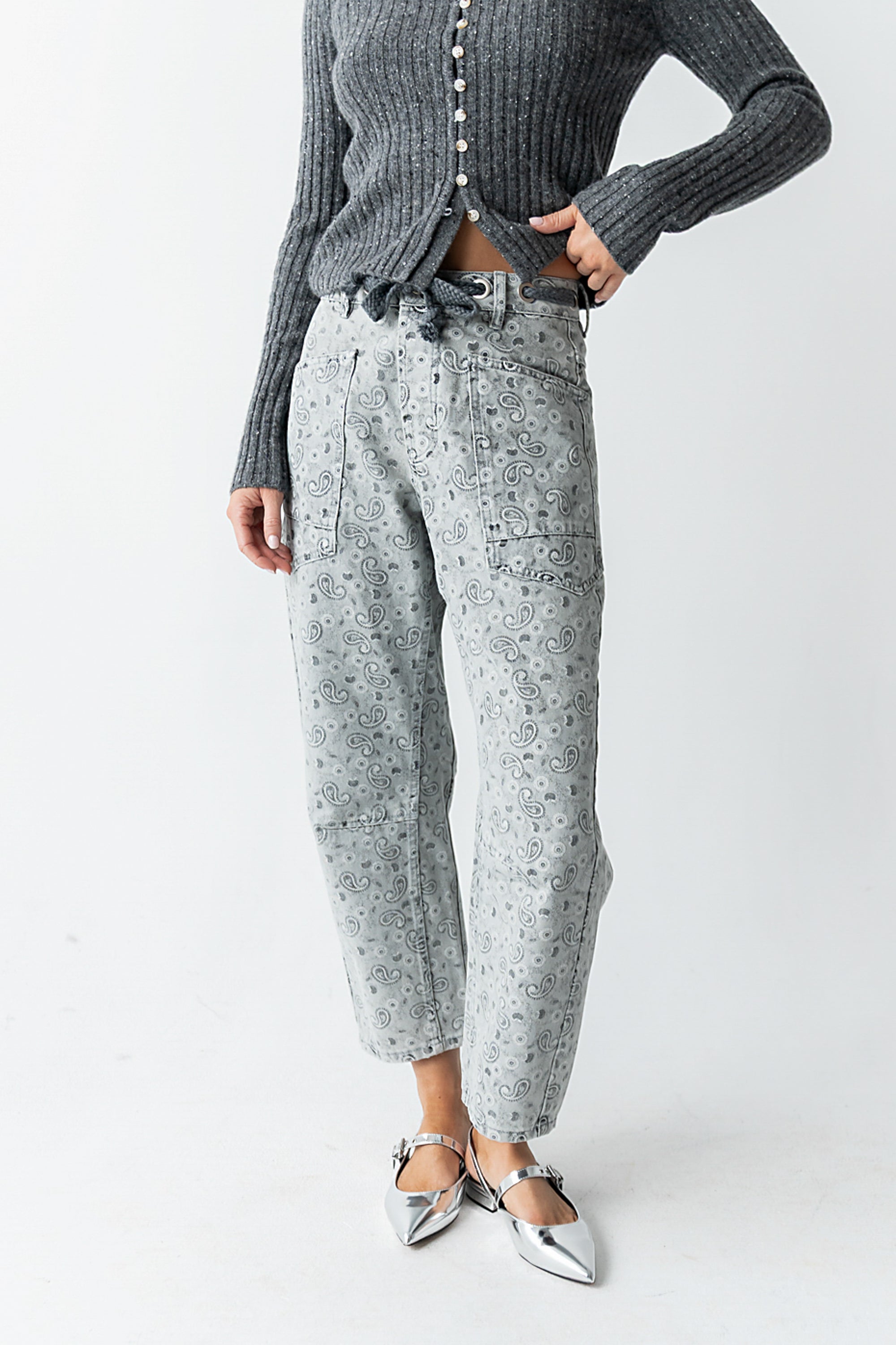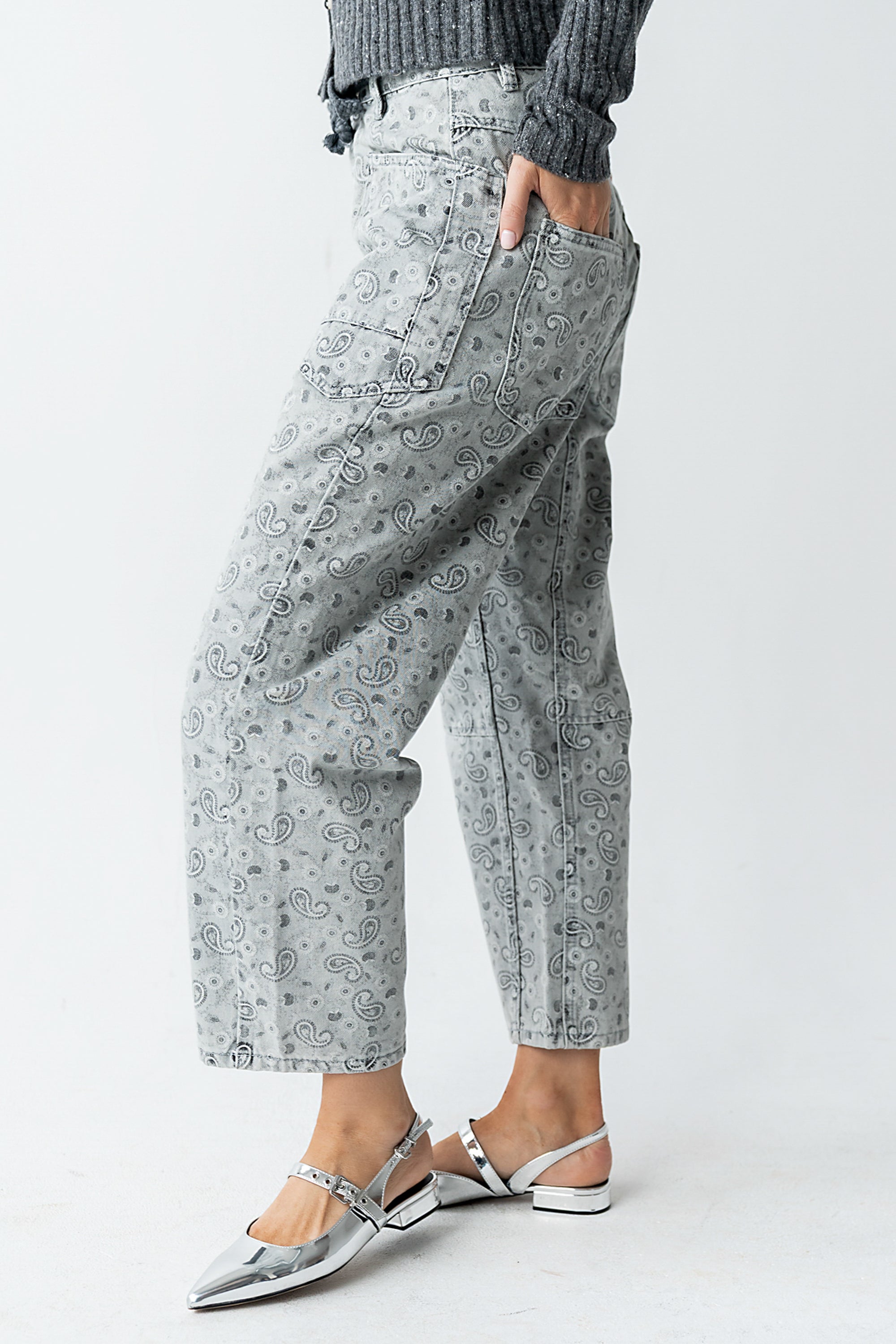 Paisley Printed Barrel Jeans