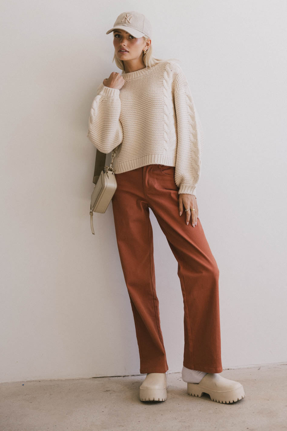 Warm days call for warm tones, and the amber hues of the Porsha Straight Leg Jeans in Rust are the perfect addition to your palette. Pair with a platform sandal and a blouse.