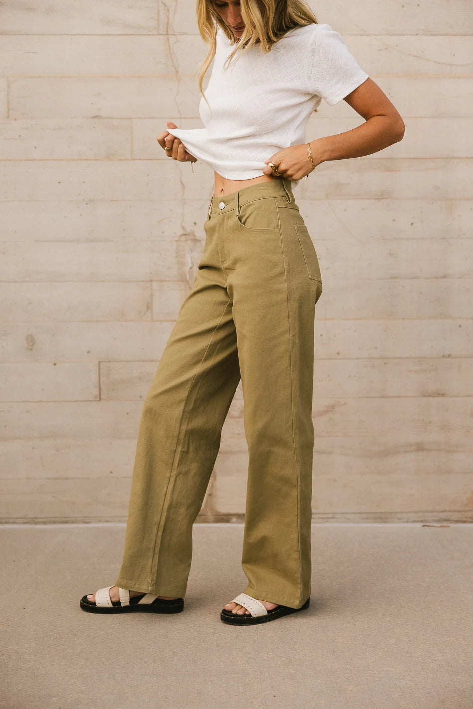 The Porsha Straight Leg Jeans in Olive are sure to show up. These jeans are versatile and can be made cool and casual, or dressed up and business casual. A graphic tee and a pair of sneakers make up the former.