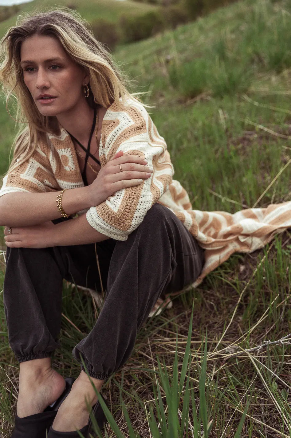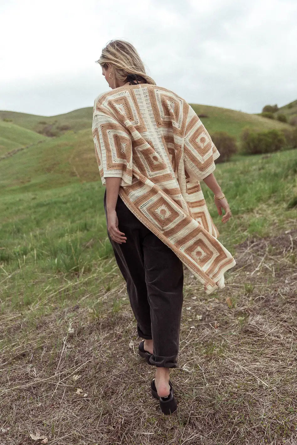 Need a versatile outer layer? The Regio Geometric Kimono in Beige is the solution you've been looking for. Grab a pair of flowy pants and boots to stay cozy on cool summer nights by the fire.