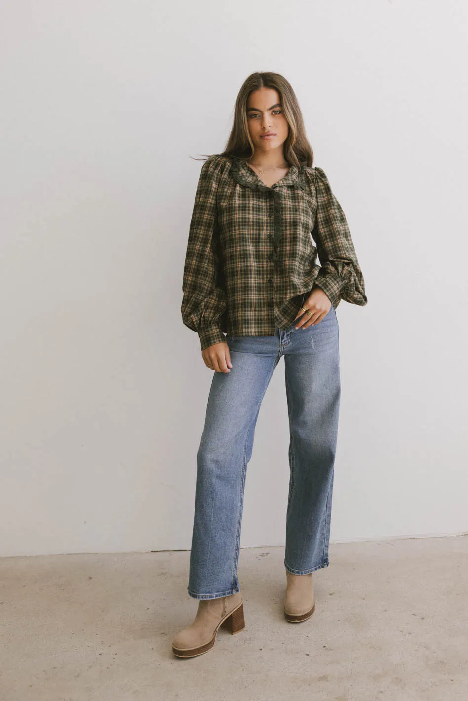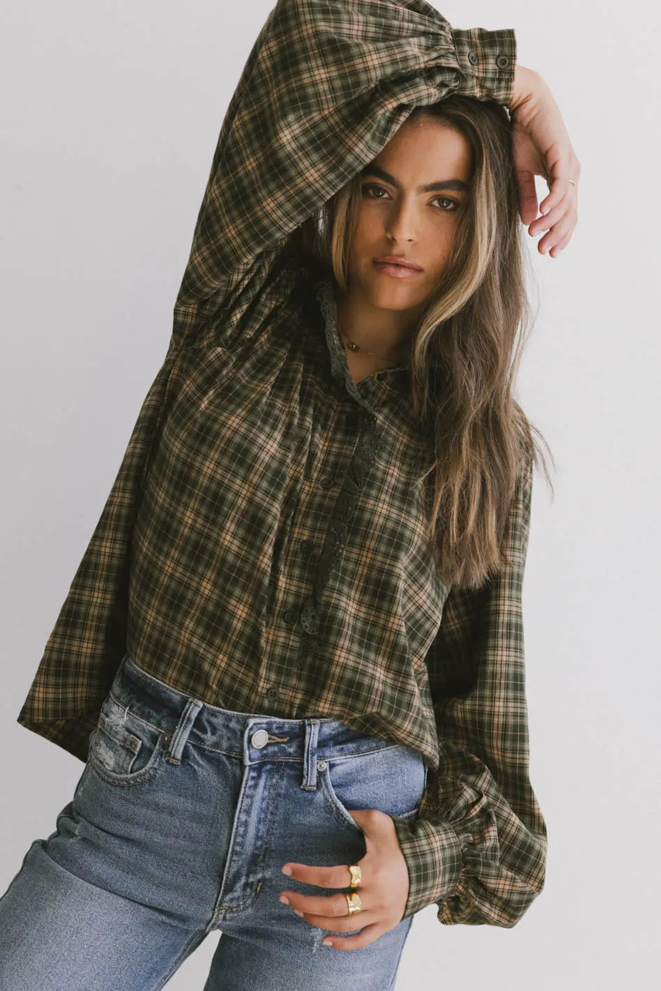 Rue Plaid Button Up in Hunter Green - FINAL SALE