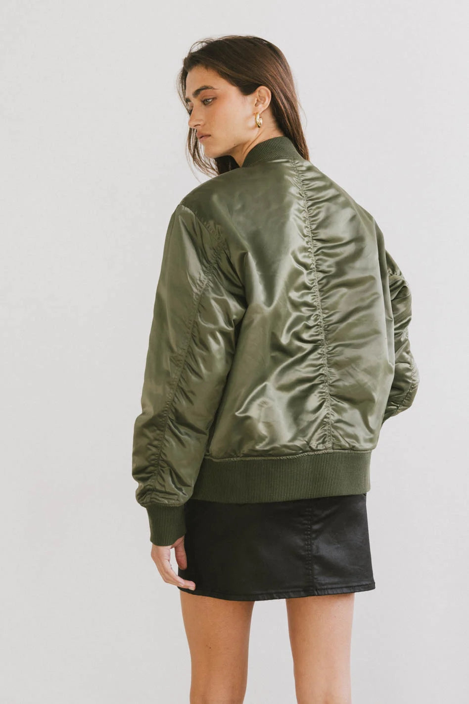 Rylee Satin Bomber Jacket in Green - FINAL SALE