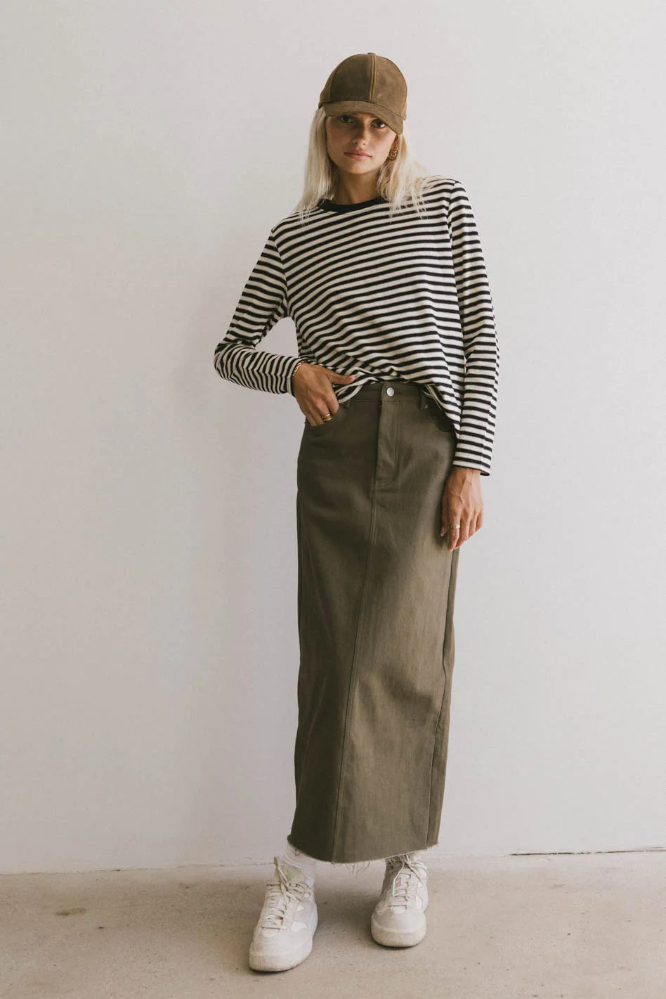 Rylie Denim Maxi Skirt in Olive - FINAL SALE