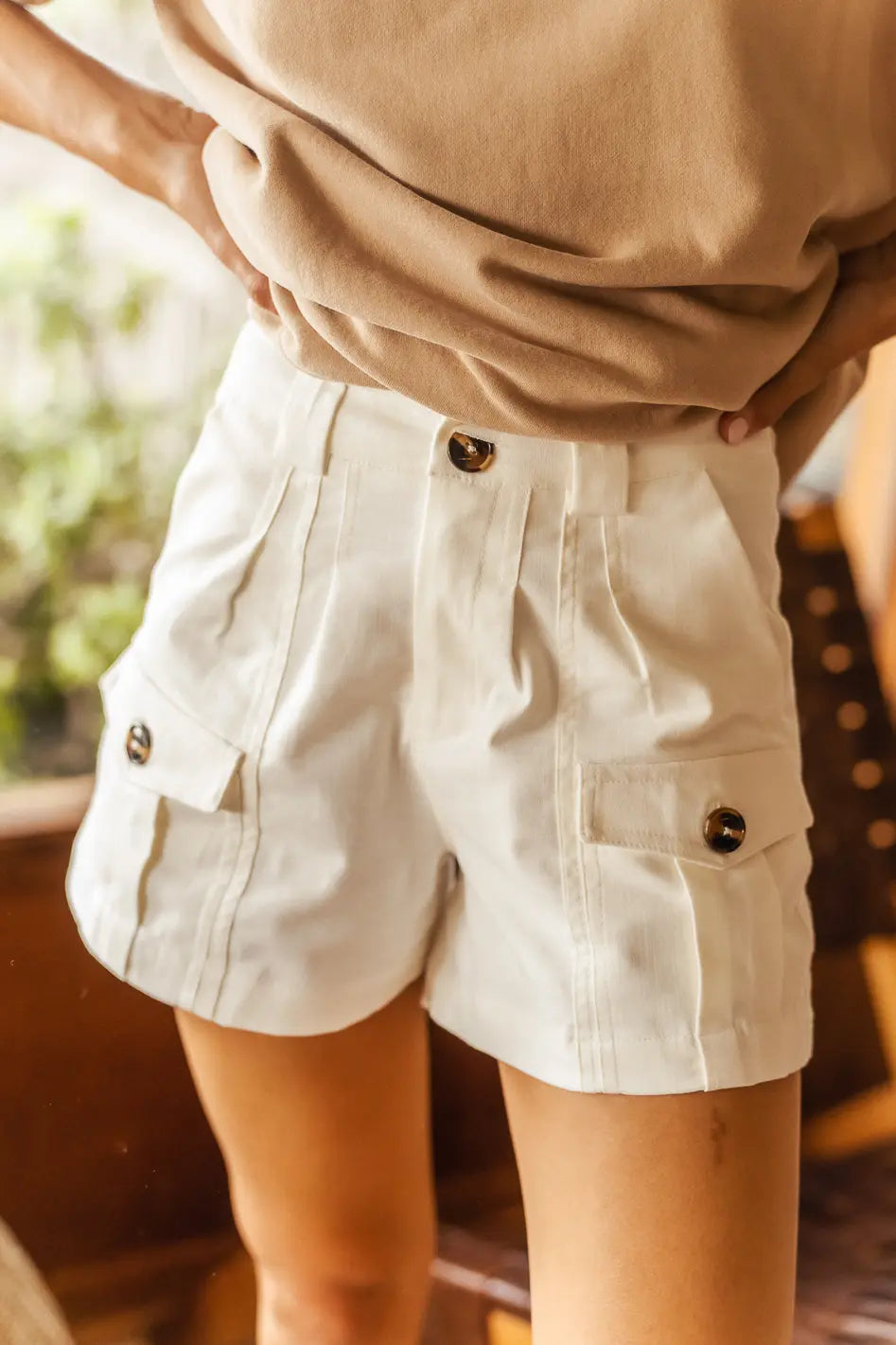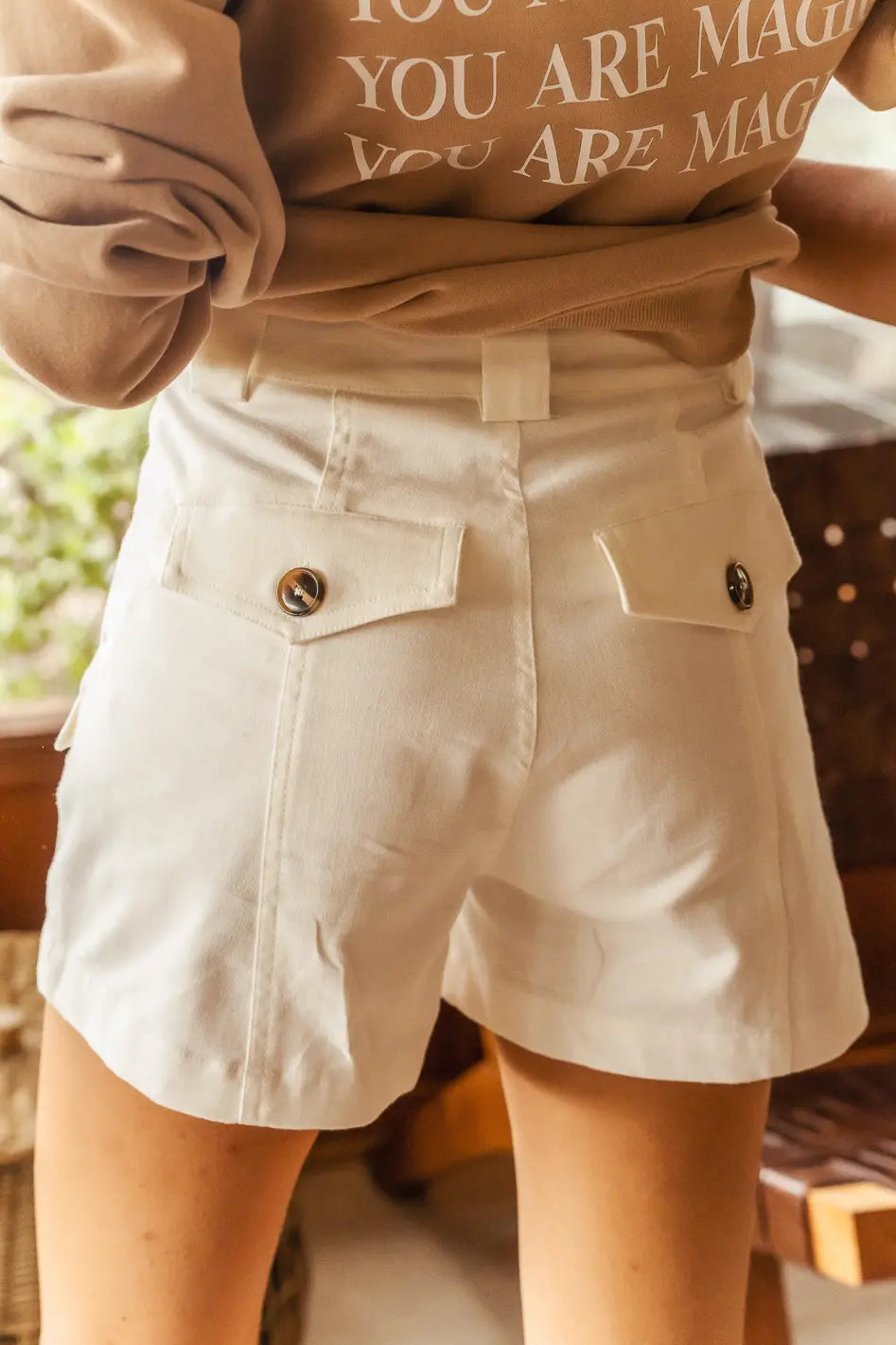 Our Scout Shorts in Off White are the perfect combination of style and versatility. Dress them up with a simple heel, or dress them down with your favorite sneakers. No matter the occasion, Scout Shorts will keep you looking and feeling your best.