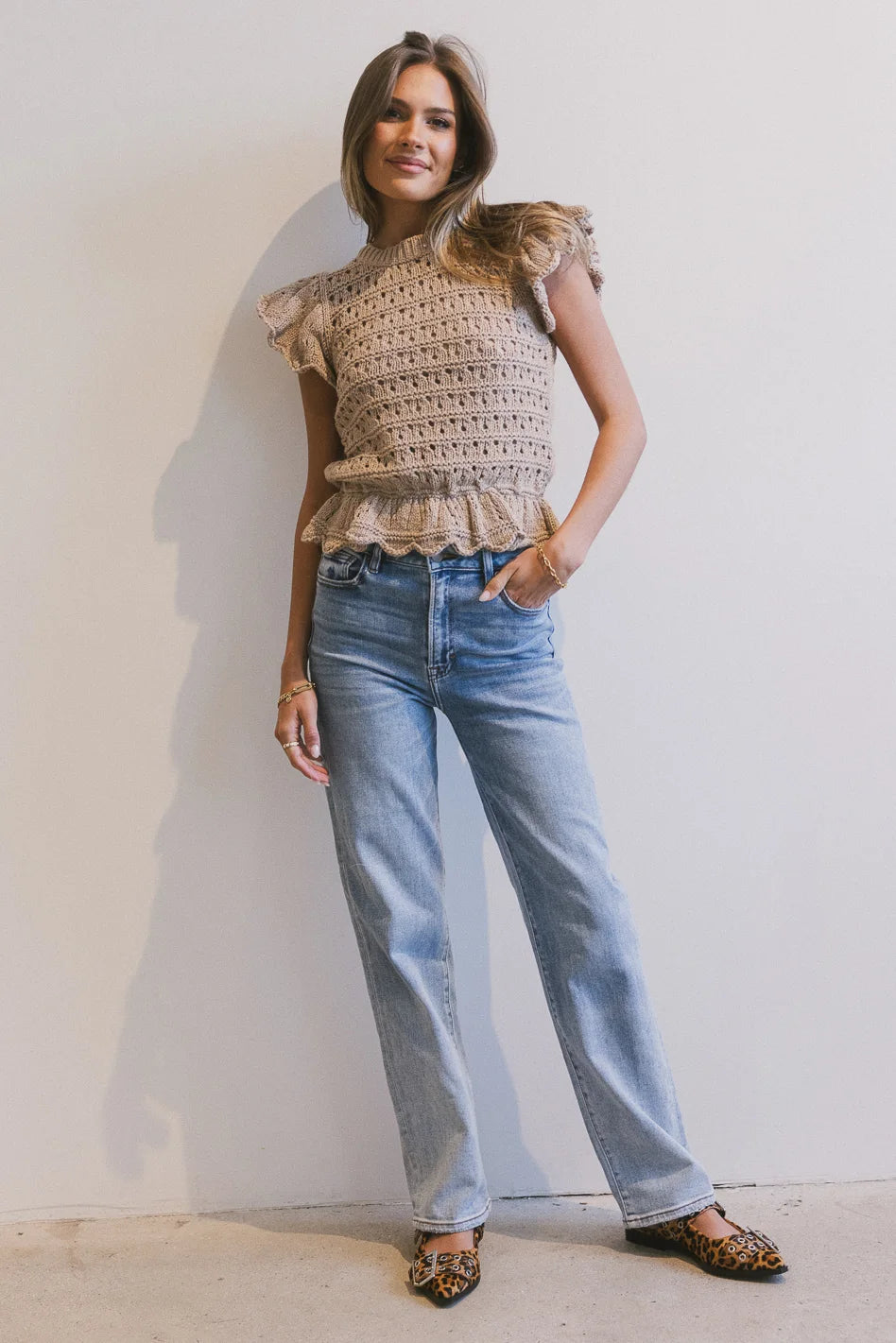 Shelly Ruffle Sweater in Natural - FINAL SALE