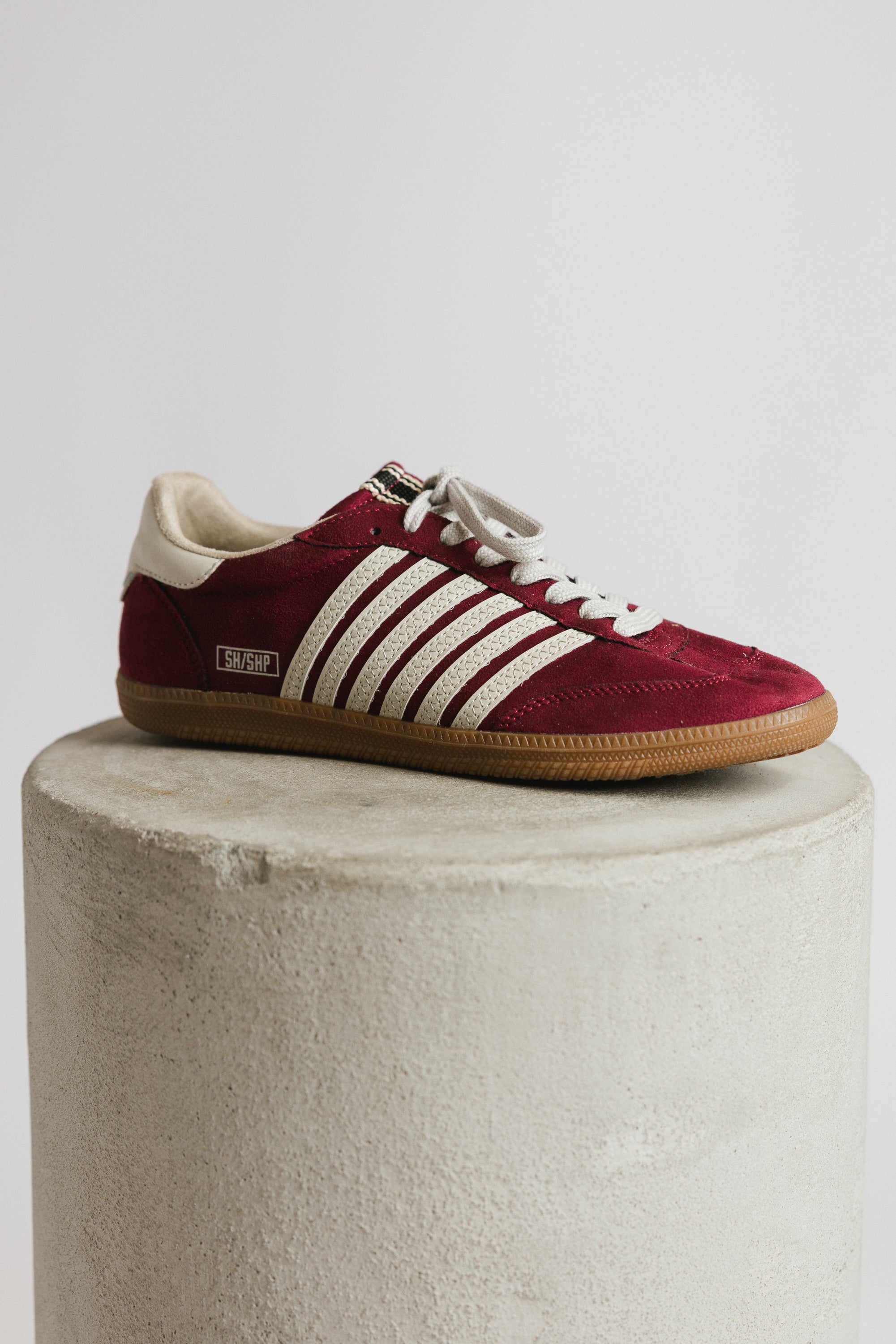- Faux Suede Upper with Stitched Faux Leather Stripe Detailing