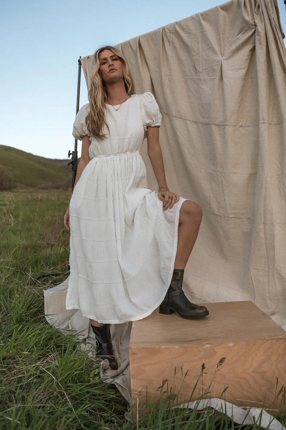 The Tenner Midi Dress is a real show stopper. The gathered pleating provides a simple, yet elegant look perfect for any formal occasion. Grab your favorite strappy sandals and a clutch to complete your outfit.