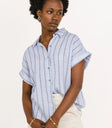 The Topanga Striped Button Up in Blue joins the ranks of can't-miss woven tops. This collared shirt's boxy fit makes it perfect for styling. Wear it buttoned up or open with a fun layering piece. Grab some mom jeans to complete the look.